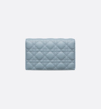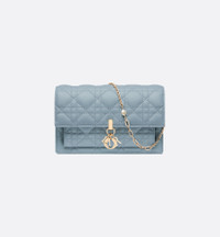 The My Dior Daily chain pouch is a compact yet spacious companion. Crafted in cloud blue lambskin with Cannage stitching, it is embellished with D.I.O.R. charms for chic and timeless appeal. Thanks to its numerous compartments, the functional accessory can accommodate all the daily essentials. Its jewel chain allows it to be worn over the shoulder or crossbody. - Front D.I.O.R. charms - Flap closure - One exterior compartment - One interior compartment - One zip pocket - One slip pocket - Six card slots - Jewel chain - Made in Italy Size & Fit - Dimensions: 19.5 x 12.5 x 5 cm / 7.5 x 5 x 2 inches (Length x Height x Width) - The size is suitable for a phone, a card holder and lipstick