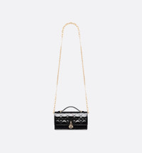 The My Dior mini bag elevates the line with an elegant and functional design. Crafted in black patent calfskin with Cannage stitching, it features a flap enhanced by D.I.O.R. charms on the front. Equipped with compartments and card slots, the functional accessory holds all the essentials and is the ideal day and evening companion. A top handle completed by a removable chain punctuated with resin pearls allows the bag to be carried by hand or worn crossbody. - Front D.I.O.R. charms - Flap closure - Two interior compartments - Rear slip pocket - Three card slots - Leather top handle - Removable jewel chain - Made in Italy Size & Fit - Dimensions: 21 x 11.5 x 4.5 cm / 8.5 x 4.5 x 2 inches (Length x Height x Width) - The size is suitable for a phone, a card holder and lipstick - Chain length: 110 cm / 43.5 inches - Chain drop length: 53 cm / 21 inches - Weight: 396 g / 14 ounces