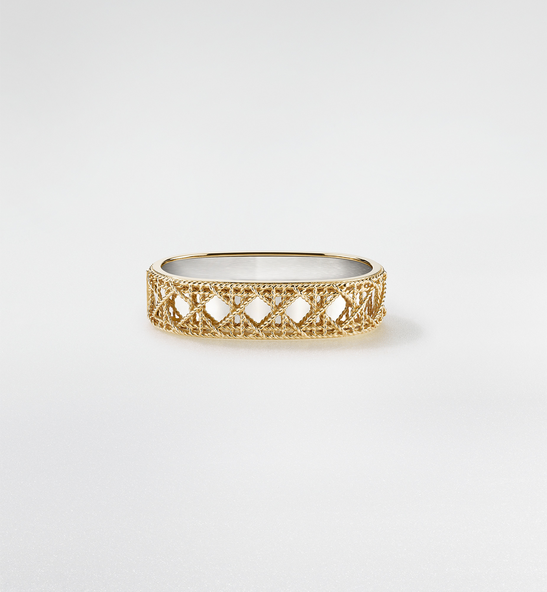 The My Dior collection by Victoire de Castellane is reinvented with a series of infinitely precious jewelry pieces. In an ode to the art of detail, a tangle of golden threads is woven together like meticulously interlaced sprigs of straw into a subtle mesh, revealing the iconic Cannage, accented by a strip of shiny gold. The craftsmanship is an homage to Dior's refined style. Combining shades of gold, the My Dior design highlights the radiance of white gold, while the iconic Cannage lines appear in yellow gold for a luminous and quintessential Dior style. - 18K yellow gold and 18K white gold Size & Fit - You may refer to the size guide on the website - For more information on sizing, we invite you to visit a boutique - We recommend styling My Dior rings together to create a unique look. The ring also pairs well with other creations from the My Dior collection