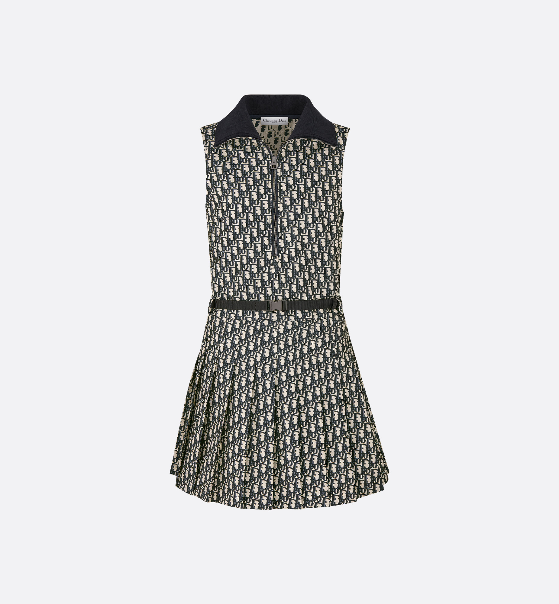 The short dress showcases the blue and ecru Dior Oblique motif, a House symbol since its debut in 1969. Crafted in technical taffeta jacquard, it features a flared silhouette elevated by pleats and a Christian Dior technical belt highlighting the waist. Embellished with a zipped mock neck, the sleeveless dress can be worn with other Dior Oblique creations to complete the look. - Embroidered hallmark bee and CD signature - Christian Dior technical belt - Zipped mock neck - Pleated style - Unlined - 100% polyester - Made in Italy Size & Fit - Flared cut - Short silhouette - Sleeveless - Size 34: shoulder-to-shoulder width: 35 cm / 14 inches, chest size: 82 cm / 32.5 inches, waist size: 68 cm / 27 inches, garment length: 85 cm / 33.5 inches - Size 36: shoulder-to-shoulder width: 36 cm / 14 inches, chest size: 86 cm / 34 inches, waist size: 72 cm / 28.5 inches, garment length: 86.5 cm / 34 inches - Size 38: shoulder-to-shoulder width: 37 cm / 14.5 inches, chest size: 90 cm / 35.5 inches, waist size: 76 cm / 30 inches, garment length: 88 cm / 34.5 inches - Size 40: shoulder-to-shoulder width: 38 cm / 15 inches, chest size: 94 cm / 37 inches, waist size: 78 cm / 30.5 inches, garment length: 88.5 cm / 35 inches - Size 42: shoulder-to-shoulder width: 39 cm / 15.5 inches, chest size: 98 cm / 38.5 inches, waist size: 84 cm / 33 inches, garment length: 90 cm / 35.5 inches - Size 44: shoulder-to-shoulder width: 40 cm / 15.5 inches, chest size: 100 cm / 39.5 inches, waist size: 86 cm / 34 inches, garment length: 91 cm / 36 inches - Size 46: shoulder-to-shoulder width: 40.5 cm / 16 inches, chest size: 102 cm / 40 inches, waist size: 88 cm / 34.5 inches, garment length: 92 cm / 36 inches - Each measurement may have a normal variation of 2 cm / 0.75 inch - The model measures 177 cm / 69.5 inches and the item shown is in size 36 (FR) - Using our personalized tool will provide you with the best size recommendation - For more information, please review the size guide