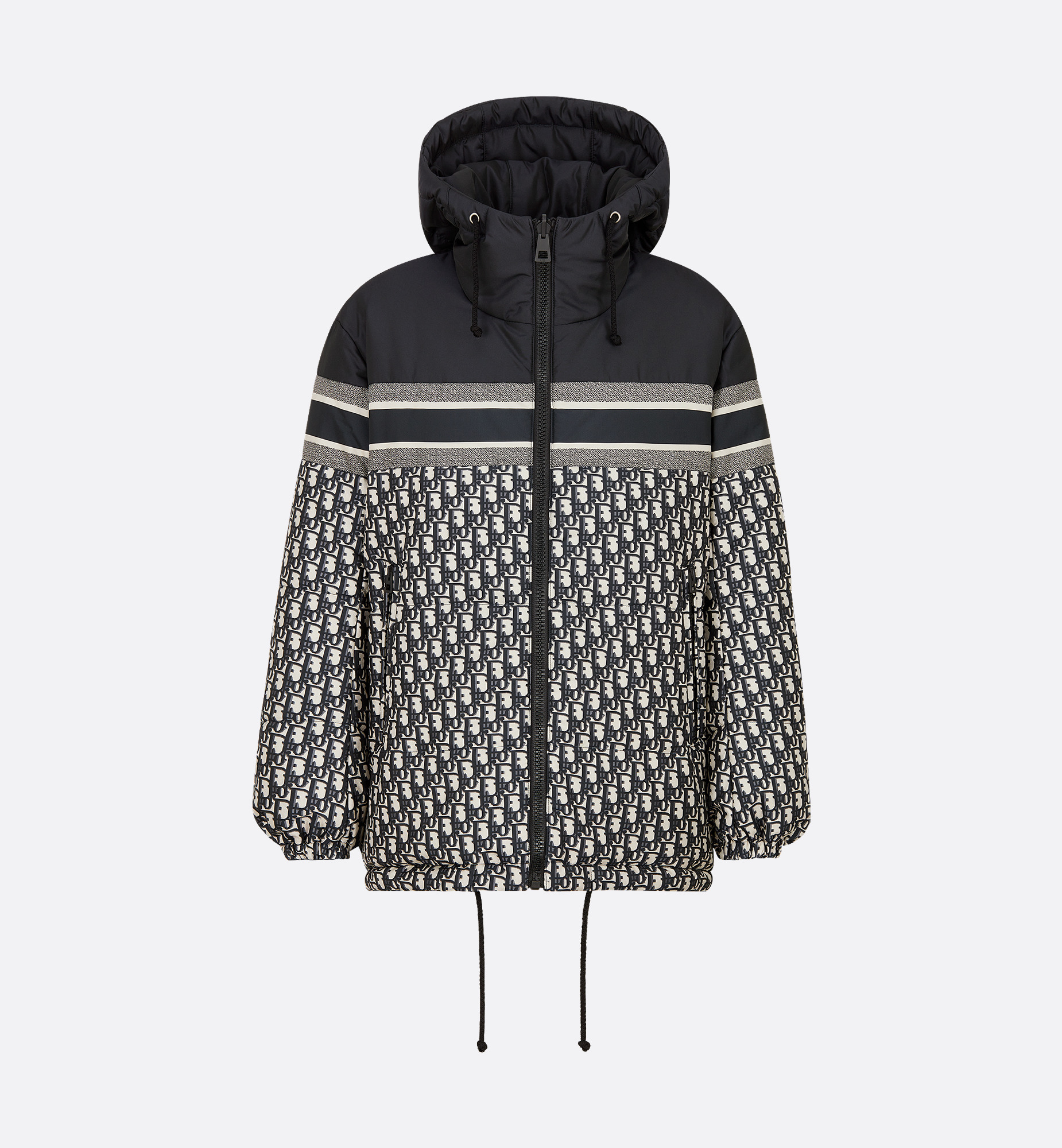 The reversible long puffer jacket combines performance and elegance. Crafted in blue and ecru quilted technical taffeta, it showcases the emblematic Dior Oblique motif on one side while the other is solid blue. The design features a stand collar, zipped pockets and a jacquard band featuring the Christian Dior signature embellishes the back. The hooded puffer jacket can be worn daily. - Christian Dior signature band on the back - Front zip closure - Stretch cuffs - Drawstring hem - Tonal lining - Filling: 100% polyester - 100% polyester - Made in Italy Size & Fit - Relaxed fit - Back length: 76 cm / 30 inches (size M) - Long sleeves - For more information, please review the size guide