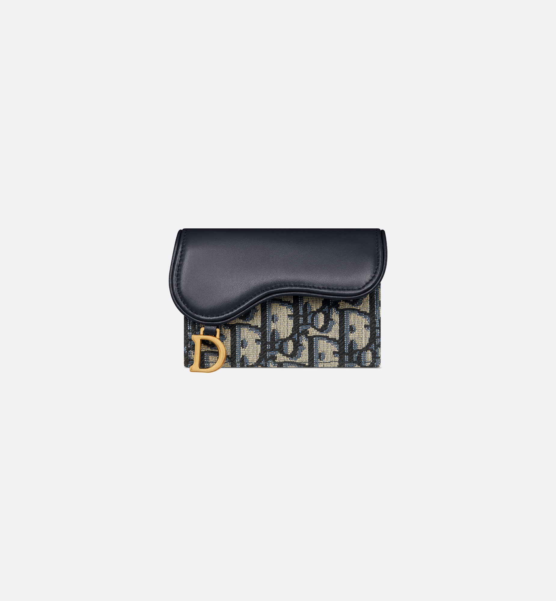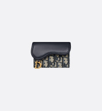 The Saddle Bloom card holder is a compact and practical alternative to the traditional wallet. Crafted in blue Dior Oblique jacquard, it is embellished with tonal smooth calfskin detailing and can accommodate the daily essentials. The small and easy-to-use companion may be paired with the entire Saddle line. - Main composition: cotton, calfskin and technical fabric - Calfskin and technical fabric lining - Front D stirrup - One gusseted compartment - Two card slots - Two slip pockets - Made in Italy Size & Fit - Dimensions: 10.5 x 7.5 x 2.5 cm / 4 x 3 x 1 inches (Length x Height x Width)