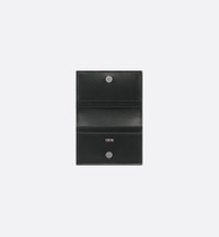The Saddle business card holder is a refined accessory that demonstrates the House's savoir-faire. Crafted in black grained calfskin marquetry with beige and black Dior Oblique jacquard highlighting the Saddle line's iconic silhouette, it features a gusseted compartment with a card slot as well as two other card slots on the flap. Embellished with the Dior signature on the front, the business card holder can be easily slipped into any pocket or bag. - Smooth calfskin interior - Three card slots - Gusseted compartment with card slot - Ruthenium-finish brass Dior signature on front - Embossed Dior signature on interior - Dust bag included - Made in Italy/Spain Size & Fit - Dimensions: 10 x 6.8 x 1.2 cm / 4 x 2.5 x 0.5 inches (Length x Height x Width) - The size is suitable for credit cards