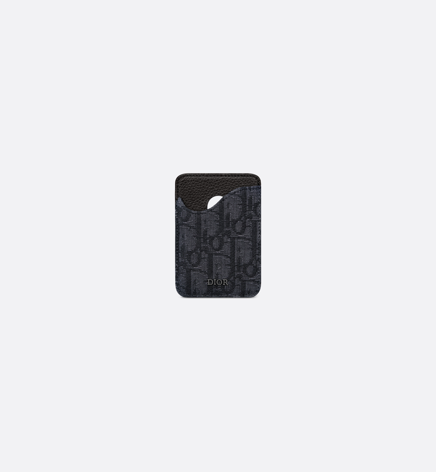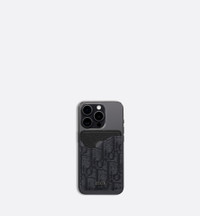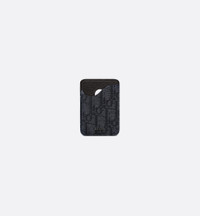 The Saddle magnetic card holder is a refined accessory that demonstrates the House's savoir-faire in leather marquetry. Crafted in black Dior Oblique jacquard and grained calfskin, it features a card slot with an iconic Saddle curve. Enhanced by the Dior signature, the elegant card holder will pair with a MagSafe phone cover. - One card slot - Ruthenium-finish brass Dior signature on front - Embossed Dior signature on interior - Dust bag included - Made in Italy/Spain Size & Fit - Dimensions: 6.5 x 9.5 cm / 2.5 x 3.5 inches (Length x Height) - The size is suitable for credit cards