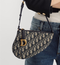 The Saddle Rodeo pouch reimagines the namesake line's hallmark codes including the antique gold-finish metal D stirrup. Made in blue Dior Oblique jacquard, it features a compact design with a compartment to organize all the essentials with one slip pocket and three card slots. Equipped with an adjustable leather strap, the pouch can be worn over the shoulder for daytime or evening. - Zip closure - Front D stirrup - One slip pocket - Three card slots - Adjustable leather strap - Made in Italy Size & Fit - Dimensions: 20 x 15 x 5 cm / 8 x 6 x 2 inches (Length x Height x Width) - The size is suitable for a phone, a card holder and lipstick - Handle length: 48 – 54 cm / 19 – 21.5 inches - Handle drop length: 18 – 22 cm / 7 – 8.5 inches - Weight: 209 g / 7.5 ounces