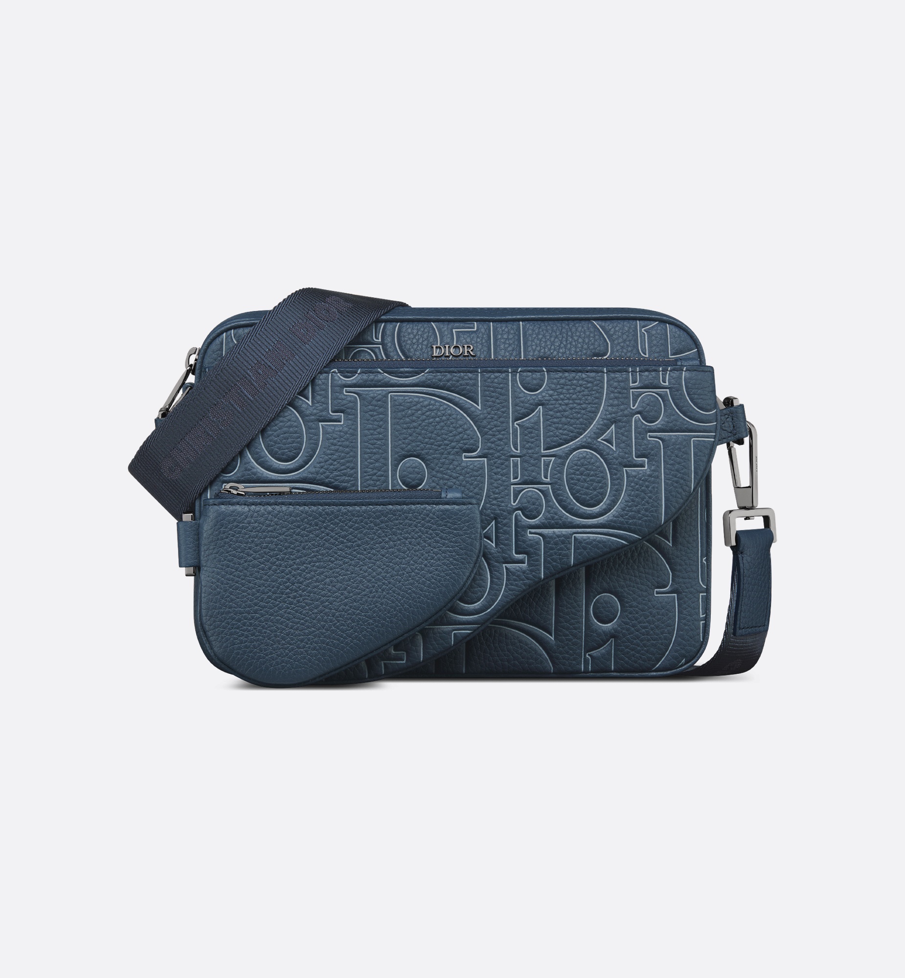 The Saddle Triple Pouch is a bold and versatile creation. The style is constructed in navy Blue Dior Gravity Outline leather, a grained calfskin embossed with the iconic House motif for a 3D effect with graphic appeal. Accented by the Dior signature on the front, the three-in-one style features a main zip compartment accompanied by front Saddle and nano Saddle pouches, both removable. An adjustable and removable strap allows the practical design to be worn over the shoulder or crossbody. - Main composition: calfskin and technical fabric - Technical fabric, cotton and calfskin lining - Main zip compartment - Removable zip Saddle pouch on the front - Adjustable and removable Christian Dior nylon jacquard shoulder strap with removable Saddle zip nano pouch and lobster clasps - Ruthenium-finish brass Dior signature on the front - Embossed Dior signature on the interior - Dust bag included - Made in Italy Size & Fit - Dimensions: 23 x 16.5 x 4 cm / 9 x 6.5 x 1.5 inches (Length x Height x Width) - The size is suitable for all phone models - Strap length: 90 – 130 cm / 35.5 – 51 inches - Drop length: 39.5 – 61 cm / 15.5 – 24 inches - Weight: 600 g / 21 ounces - Size and weight details may vary depending on the product's material