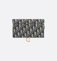 The Saddle pouch with chain, crafted in blue Dior Oblique jacquard, is a hybrid creation with a both modern and streamlined design. The accessory has an asymmetrical flap featuring an antique gold-finish metal D stirrup. Thanks to its detachable chain strap, the small pouch may be worn over the shoulder, crossbody or carried by hand. - Main composition: calfskin and technical fabric - Cotton, calfskin and technical fabric lining - Front D stirrup - Six card slots - Three slip pockets - One removable zipped pouch - Removable chain strap - Made in Italy Size & Fit - Dimensions: 19 x 9.5 x 3 cm / 7.5 x 3.5 x 1 inches (Length x Height x Width) - Chain length: 120 cm / 47 inches - Chain drop length: 58 cm / 23 inches