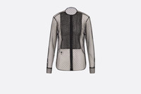 The black blouse offers a play on transparency with its delicate and graceful silhouette. Crafted in tulle, a material cherished by the House, it features a lace plastron, highlighting the piece with an elegant touch. The contrasting embroidered bee subtly highlights the front. The crew neck blouse may be worn with a Bar Jacket, layered over a bralette for a refined play on transparency. - Embroidered bee emblem - Front button closure - Mother-of-pearl buttons - Removable tonal lining - 100% polyamide - Made in Italy Size & Fit - Standard fit - Back length: 69 cm / 27 inches (size 36) - Long sleeves - For more information, please review the size guide