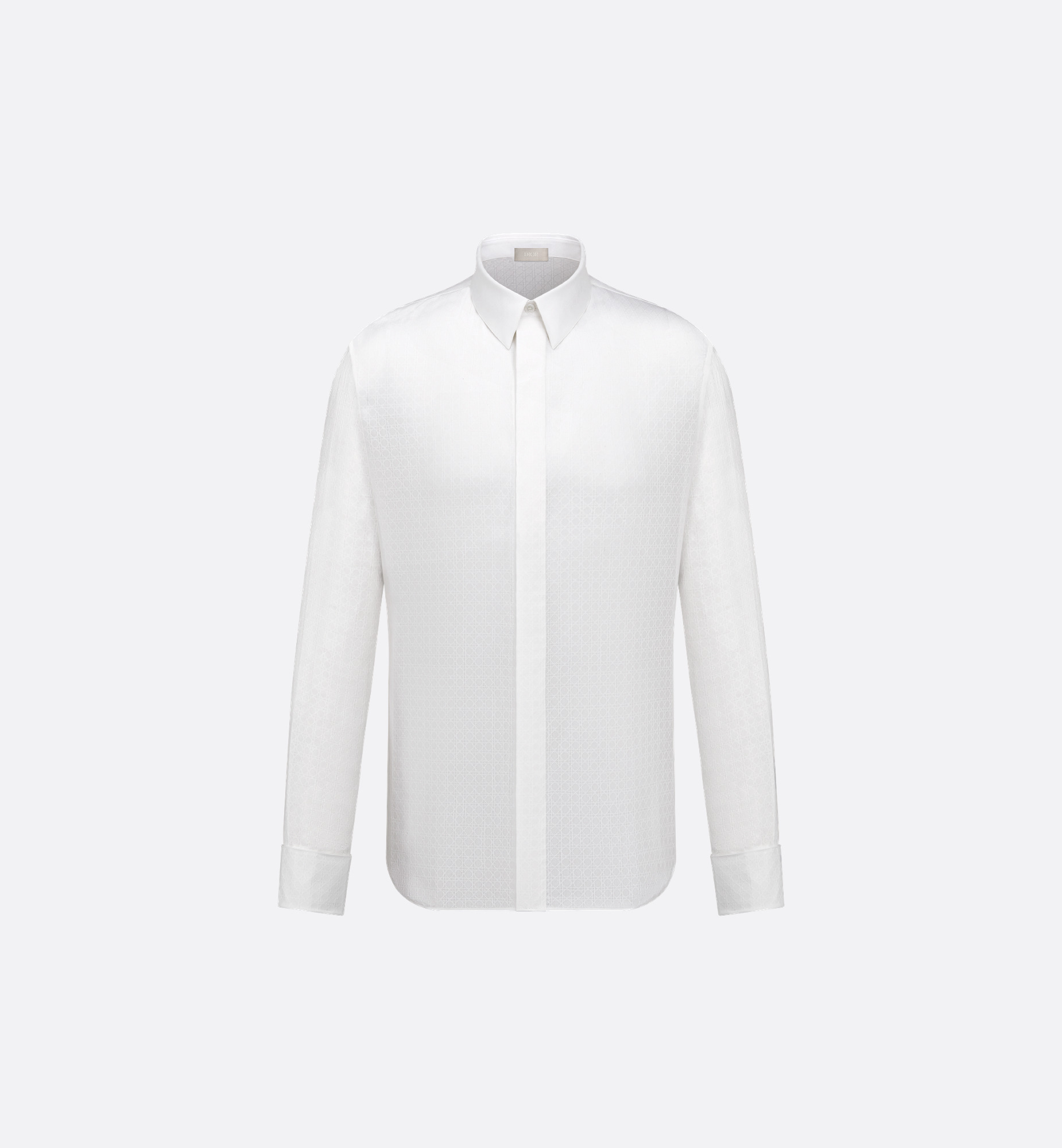 Tailoring is quintessential Dior atelier savoir-faire and lies at the heart of House heritage. Celebrating this unique expertise, Kim Jones, Creative Director of Dior Men collections, reimagines the codes of elegance of an iconic Dior silhouette: the classic shirt. Crafted in white cotton and silk poplin, it is adorned with the tonal allover Microcannage motif. It has a comfortable fit accented by a concealed button placket, a shirttail hem and French cuffs. The shirt can be styled with any pants or jeans for a relaxed look. - French cuffs - Collar: 6.5 cm / 2.5 inches - Concealed button placket - Mother-of-pearl Dior buttons - Shirttail hem - 58% cotton, 42% silk - Made in Italy Size & Fit - Comfortable fit - Using our personalized tool will provide you with the best size recommendation - For more information, please review the size guide