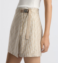 The skort showcases the hallmark Dior Oblique motif. Crafted in beige jacquard technical taffeta, it presents a slightly flared cut enhanced by a utilitarian-inspired Christian Dior buckle and elastic band highlighting the waist. The skort can be styled with the matching vest to complete the look. - Elastic waistband - Utilitarian-inspired Christian Dior buckle - Unlined - 100% polyester - Made in Italy Size & Fit - Slightly flared cut - High waist - Size 34: waist size: 64 cm / 25 inches, hip circumference: 76 cm / 30 inches, thigh circumference: 63 cm / 25 inches, garment length: 37 cm / 14.5 inches - Size 36: waist size: 66 cm / 26 inches, hip circumference: 79 cm / 31 inches, thigh circumference: 65 cm / 25.5 inches, garment length: 37.5 cm / 15 inches - Size 38: waist size: 68 cm / 27 inches, hip circumference: 82 cm / 32.5 inches, thigh circumference: 67.5 cm / 26.5 inches, garment length: 38 cm / 15 inches - Size 40: waist size: 73 cm / 28.5 inches, hip circumference: 85 cm / 33.5 inches, thigh circumference: 70 cm / 27.5 inches, garment length: 38.5 cm / 15 inches - Size 42: waist size: 77 cm / 30.5 inches, hip circumference: 88 cm / 34.5 inches, thigh circumference: 72 cm / 28.5 inches, garment length: 39 cm / 15.5 inches - Size 44: waist size: 81 cm / 32 inches, hip circumference: 92 cm / 36 inches, thigh circumference: 74 cm / 29 inches, garment length: 39.5 cm / 15.5 inches - Size 46: waist size: 85 cm / 33.5 inches, hip circumference: 96 cm / 38 inches, thigh circumference: 76 cm / 30 inches, garment length: 40 cm / 15.5 inches - Each measurement may have a normal variation of 2 cm / 0.75 inch - The model measures 179 cm / 70.5 inches and the item shown is in size 36 (FR) - Using our personalized tool will provide you with the best size recommendation - For more information, please review the size guide