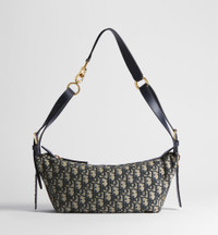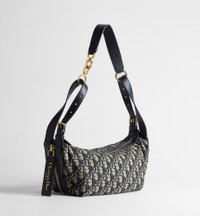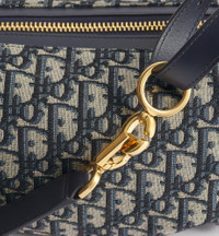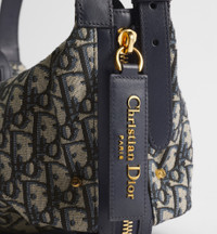 The D-Journey bag showcases a hobo silhouette with a modern and supple design. The blue Dior Oblique jacquard style features a main compartment with a zip pocket, while two decorative side pockets showcase a large leather pull with the Christian Dior Paris signature. Equipped with adjustable leather top handles and a leather strap, the small D-Journey bag can be carried by hand, worn over the shoulder or crossbody as a daily companion. - Main composition: cotton, calfskin and technical fabric - Cotton, technical fabric and calfskin lining - Zip closure - Leather strap and adjustable top handles with gold-finish metal CD hook - Decorative side pockets with leather pulls with antique gold-finish metal Christian Dior Paris signature - Interior zip pocket - Dust bag included - Made in Italy Size & Fit - Dimensions: 23 x 14 x 16 cm / 9 x 5.5 x 6.5 inches (Length x Height x Width) - The size is suitable for a phone, a wallet, sunglasses and lipstick - Size and weight details may vary depending on the product's material