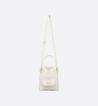 New for Fall 2025, the Dior Caro bucket bag embodies modern and elegant style. Crafted in latte lambskin elevated by Macrocannage topstitching, the design features a spacious drawstring compartment. The front flap pocket adorned with a gold-finish metal CD signature allows it to hold all the small essentials. Thanks to the removable top handle and adjustable, removable strap, the small bucket bag can be carried by hand, worn over the shoulder or crossbody. - Main composition: lambskin and calfskin - Calfskin lining - CD signature on the front - Drawstring closure - Slip pocket on the front with magnetic flap - Interior slip pocket - Removable leather top handle - Adjustable and removable leather shoulder strap - Dust bag included - Made in Italy Size & Fit - Dimensions: 20 x 24 x 9 cm / 8 x 9.5 x 3.5 inches (Length x Height x Width) - The size is suitable for a phone, a wallet, two card holders, sunglasses and lipstick - Strap length: 108 – 122 cm / 42.5 – 48 inches - Drop length: 46 – 54 cm / 18 – 21.5 inches - Top handle length: 36 cm / 14 inches - Top handle drop length: 11 cm / 4.5 inches - Weight: 400 g / 14 ounces - Size and weight details may vary depending on the product's material