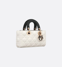 The Lady D-Joy bag captures the House's vision of elegance and beauty by showcasing the streamlined aesthetic of the iconic Lady Dior line. Crafted in latte and black lambskin with Cannage stitching, the refined and timeless style is enhanced by D.I.O.R. charms in pale gold-finish metal and black enamel to complement the color of the top handles. Featuring one detachable chain strap and another adjustable and removable leather strap, the small Lady D-Joy bag can be carried by hand, worn over the shoulder or crossbody as a daily companion. - Main composition: lambskin - Goatskin and lambskin lining - Removable chain strap - Adjustable and removable leather shoulder strap - Interior slip pocket - Dust bag included - Made in Italy Size & Fit - Dimensions: 22 x 11 x 6 cm / 8.5 x 4.5 x 2.5 inches (Length x Height x Width) - The size is suitable for a phone, a card holder and lipstick - Strap length: 110 – 120 cm / 43.5 – 47 inches - Drop length: 51 – 56 cm / 20 – 22 inches - Chain length: 55 cm / 21.5 inches - Chain drop length: 24.5 cm / 9.5 inches - Top handle length: 22 cm / 8.5 inches - Top handle drop length: 6 cm / 2.5 inches - Weight: 700 g / 24.5 ounces - Size and weight details may vary depending on the product's material