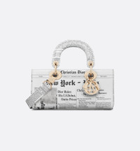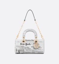 The Lady D-Joy bag captures the House's vision of elegance and beauty by showcasing the iconic streamlined aesthetic of the Lady Dior line. Crafted in calfskin with a white and black Newspaper motif, inspired by House archives, it is elevated by pale gold-finish metal D.I.O.R. charms illuminating its silhouette. Featuring one removable chain strap and another adjustable and removable leather strap, the small Lady D-Joy bag can be carried by hand, worn over the shoulder or crossbody as a daily companion. - Main composition: calfskin - Goatskin and calfskin lining - Removable chain strap - Adjustable and removable leather strap - Interior slip pocket - Dust bag included - Made in Italy Size & Fit - Dimensions: 22 x 11 x 6 cm / 8.5 x 4.5 x 2.5 inches (Length x Height x Width) - The size is suitable for a phone, a card holder and lipstick - Strap length: 110 – 120 cm / 43.5 – 47 inches - Drop length: 51 – 56 cm / 20 – 22 inches - Chain length: 55 cm / 21.5 inches - Chain drop length: 24.5 cm / 9.5 inches - Top handle length: 22 cm / 8.5 inches - Top handle drop length: 6 cm / 2.5 inches - Weight: 700 g / 24.5 ounces - Size and weight details may vary depending on the product's material