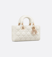 The Lady D-Joy bag captures the House's vision of elegance and beauty by showcasing the iconic streamlined aesthetic of the Lady Dior line. Crafted in latte lambskin with Cannage stitching, the quilted texture is unmistakable, while strass-embellished D.I.O.R. charms illuminate the silhouette. Featuring one detachable chain strap and another adjustable and removable leather strap, the small Lady D-Joy bag can be carried by hand, worn over the shoulder or crossbody as a daily companion. - Main composition: lambskin - Goatskin and lambskin lining - Removable chain strap - Adjustable and removable leather shoulder strap - Interior slip pocket - Dust bag included - Made in Italy Size & Fit - Dimensions: 22 x 11 x 6 cm / 8.5 x 4.5 x 2.5 inches (Length x Height x Width) - The size is suitable for a phone, a card holder and lipstick - Strap length: 110 – 120 cm / 43.5 – 47 inches - Drop length: 51 – 56 cm / 20 – 22 inches - Chain length: 55 cm / 21.5 inches - Chain drop length: 24.5 cm / 9.5 inches - Top handle length: 22 cm / 8.5 inches - Top handle drop length: 6 cm / 2.5 inches - Weight: 700 g / 24.5 ounces - Size and weight details may vary depending on the product's material