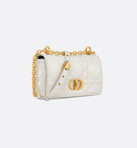 New for Fall 2025, the Soft Dior Caro bag showcases a supple construction combining modernity and timeless elegance. The luxurious latte lambskin style is embellished with Macrocannage topstitching, while the flap is adorned with an antique gold-finish metal CD twist clasp, inspired by the seal of a Christian Dior perfume bottle. The detachable chain strap with CD links allows the small bag to be carried by hand, worn over the shoulder or crossbody, and may be replaced by one of the House's wide embroidered straps for day or evening attire. - Main composition: lambskin - Lambskin lining - Flap closure with CD twist clasp - Adjustable, detachable CD chain link strap with Christian Dior Paris military-inspired buckle - Two removable links with an X-shaped center notch allow the chain to be opened - Interior zip pocket and slip pocket - Rear slip pocket - The bag may be paired with the House's different embroidered straps - Dust bag included - Made in Italy Size & Fit - Dimensions: 20 x 13 x 7 cm / 8 x 5 x 3 inches (Length x Height x Width) - The size is suitable for a phone, a card holder and lipstick - Size and weight details may vary depending on the product's material