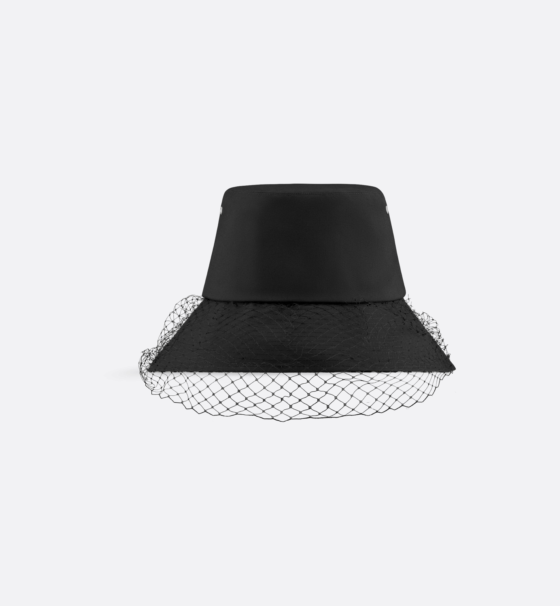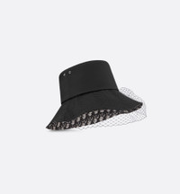 An essential piece from Maria Grazia Chiuri’s collections, the bucket hat is completely reimagined by the House in a couture version. The hat is crafted in a black cotton blend while a veil and contrasting brim with the black emblematic Dior Oblique motif lining elegantly complete the style. The large brim bucket hat will add the finishing touch to any day look. - Large brim with topstitching - Brim lined with black Dior Oblique motif - 53% polyester, 42% cotton, 5% polyurethane - Veil: 100% nylon - Lining: 100% cotton - Made in Italy Size & Fit - Four available sizes: 56 cm / 22 inches, 57 cm / 22.5 inches, 58 cm / 23 inches, 59 cm / 23.5 inches