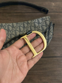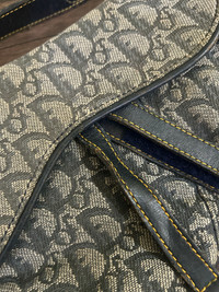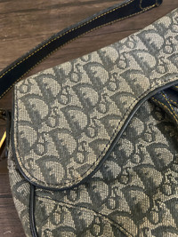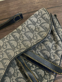 This is an authentic CHRISTIAN DIOR Monogram Saddle Bag in Blue. This shoulder bag is made of navy Dior monogram canvas. The bag features blue cowhide leather trim, a leather handle, a rear pocket, and gold hardware. The flap opens to a multicolour nylon interior with a zipper pocket. Sold as is. It carries a B condition. The jacquard canvas has light discolouration. The handles have creasing and worn edges while interior has dirt marks. Please take note that side logo buckle that links strap are not available and need replacement parts. Piping has scuff, no cracks. Bag only. Please inspect all photos for details, they form part of the descriptions. Width : 24cm Height : 20 cm Width : 5cm #dior #minibag #saddlebag #vintage #luxury #y2k #90s #2000s #milennium #genz