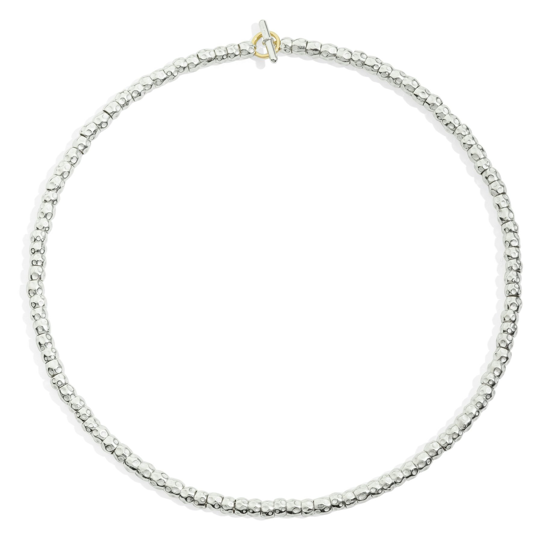 DCB4001-GRANE-000OA The shimmer of sand sparkles in the Granelli collection! A dream of sun-drenched beaches you can add to and collect. Granelli necklace in sterling silver, chain in sterling silver with brise ring closure in 18K yellow gold. Needle in sterling silver included. Product Care Every Dodo jewel is made to be worn every day and on every occasion. This is why no extraordinary maintenance is needed, especially if it is delicately handled and cleaned. If you want to preserve the shine of Dodo jewelry, we recommend you to store it in a clean, dry place away from any heat sources.