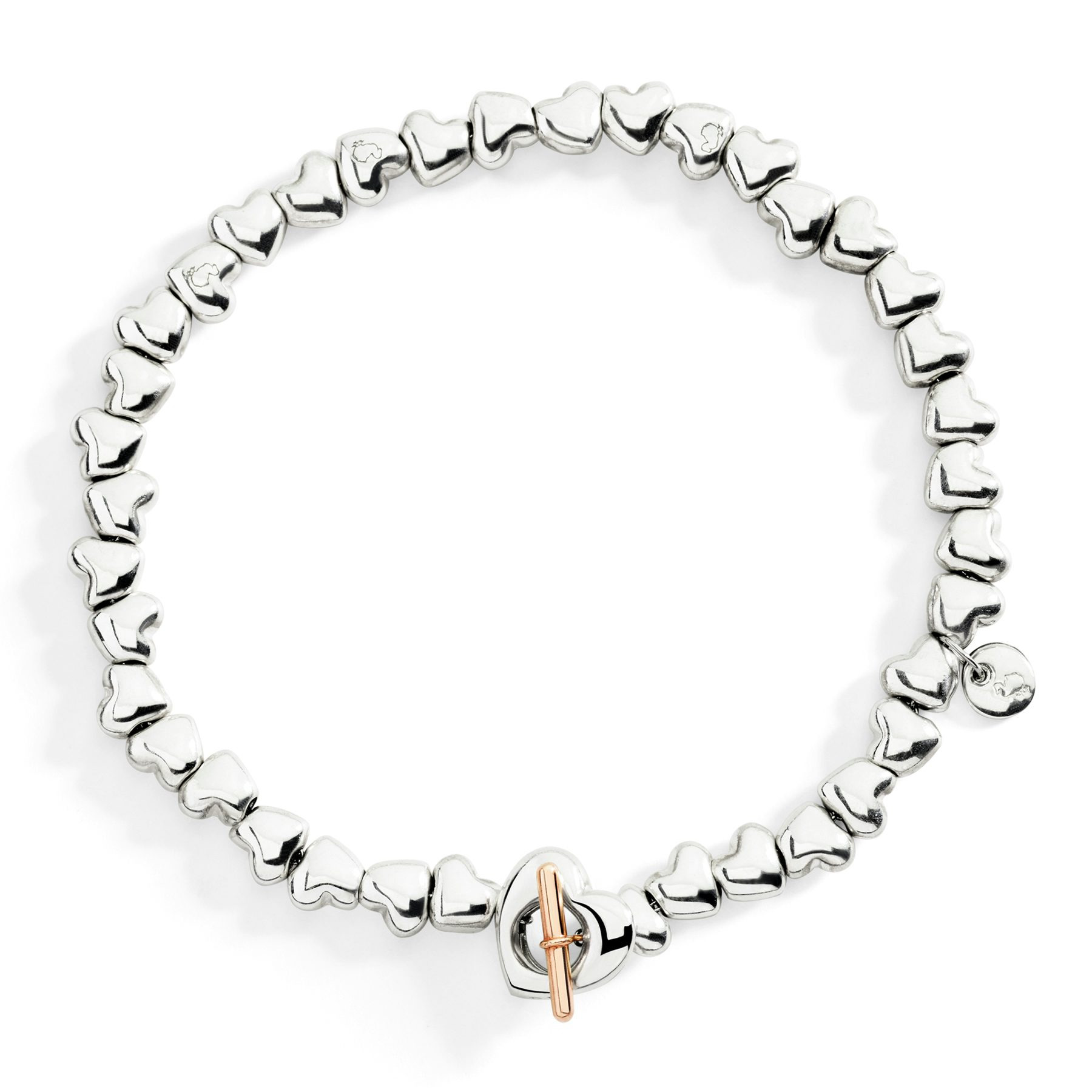 DBC5000-HEART-0009A A true declaration of love, even to oneself. Proud, courageous, ironic: love, according to DoDo is free from labels and chains, free to express itself in all of its uniqueness. Choose your perfect love message from charms, rings and earrings. Heart bracelet with components and clasp cover in 925 sterling silver, t-bar in 9k rose gold, chain and closure ring in steel. Steel needle included. Product Care Every Dodo jewel is made to be worn every day and on every occasion. This is why no extraordinary maintenance is needed, especially if it is delicately handled and cleaned. If you want to preserve the shine of Dodo jewelry, we recommend you to store it in a clean, dry place away from any heat sources.