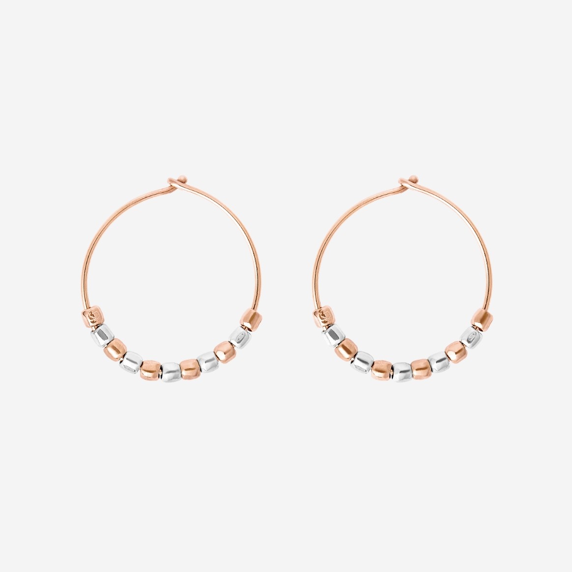SKU: DOC1000_GRANX_0009A 9K ROSE GOLD, SILVER. Large hoop earrings in 9K rose gold with mini granelli in 9K rose gold and .925 silver. Sold as a pair.