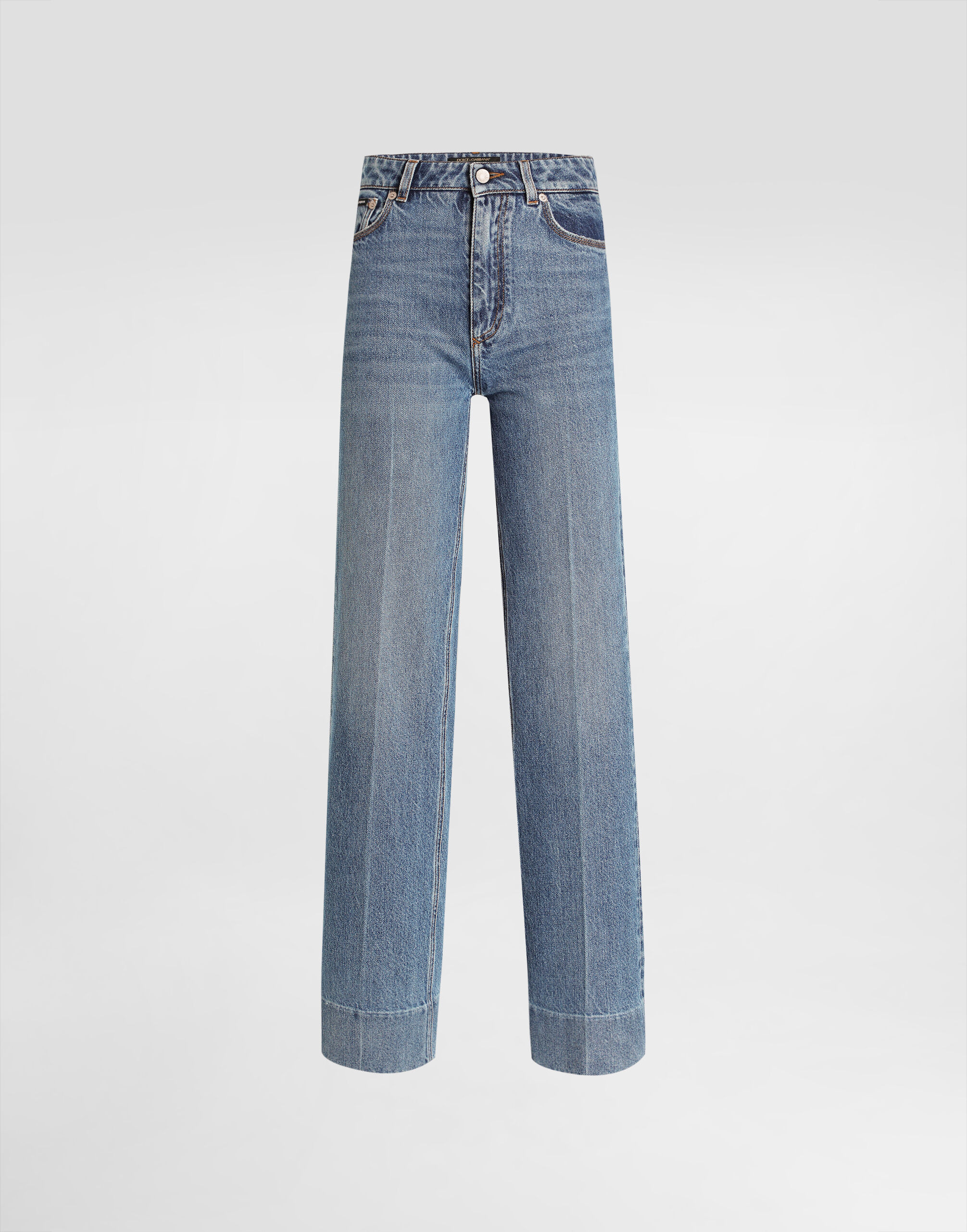 A wardrobe essential, the 5-pocket denim trousers are perfect for a casual and versatile style. Crafted with attention to detail, these trousers combine comfort and fashion in one garment. 5-pocket denim trousers: • Multi-colored • Cigarette line • High waist • Bottom 26 cm • The model is 175 cm tall and wears size 40 IT • Made in Italy External Composition: 100% Cotton