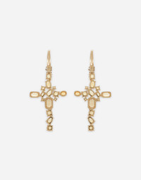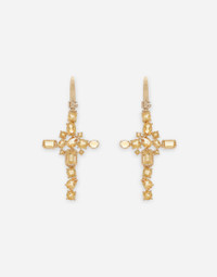 18kt yellow gold Leverback earrings featuring a cross with 14 citrines of different cuts and settings. Technical specifications: 18 Kt Yellow Gold Gemstones: 10 round citrines (quartz variety); 4 oval citrines (quartz variety); 6 square citrines (quartz variety); 4 pear citrines (quartz variety); 2 oval citrines (quartz variety); 4 rectangular citrines (quartz variety). Made in Italy 18kt yellow gold