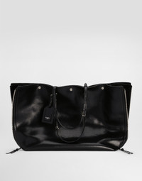 The scene is set for Dolce&Gabbana's distinctive and iconic aesthetic codes in the Collection from Men's Fall/Winter 2025 Fashion Show. The evening lights up with radiant brooches and is enriched with classic suits and blazers of timeless elegance. The calfskin Atene tote bag is a perfect combination of elegance and functionality, designed for the modern man who does not give up style. Atene calfskin shopping bag: • Black • Leather handles • Button closure • Matt old titanium nickel plating • External and internal customization with stamp with film • Removable pouch • Item equipped with a logo bag and a pre-assembled box • Measurements: H42.5 x W68 x D14 cm • Made in Italy External Composition: 95% Calfskin, 5% PVC Internal Composition: 90% Calfskin, 10% Cotton