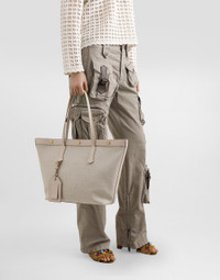 The Atene tote bag is the ideal companion for your days. Made with a refined salt&pepper bonded fabric, it combines elegance and practicality in a unique design. Atene Shopping in salt&pepper fabric: • Beige • Leather handles • Snap buttons closure • Vintage brass electroplating buckle • External and internal customization with stamp and film • Removable zip pocket • Item with logo bag • Measurements: H30 x W31 x D10 cm • Made in Italy External Composition: 71% Cotton, 15% Linen, 7% Polyester, 5% Calfskin, 2% PVC Internal Composition: 70% Cotton, 15% Linen, 10% Calfskin, 5% Polyester