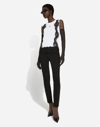 The DNA collection is distinguished by timeless shapes, bringing together three concepts: Sicilian flair, tailoring and sensuality. Nero Sicilia black and optical white predominate and pair with colors that catapult us onto the island of Sicily and make us dream. The designers channel the timeless wardrobe made up of creations that are instantly unmistakable in their simplicity, presenting us with sophisticated beauty loaded with meaning and symbolism that transcends fashion. Stretch cotton denim skinny Audrey jeans: • Black • High-waisted • 5 pockets • Skinny fit • Branded metal and leather tag • Branded label on the coin pocket • Inner leg: 73 cm • Hem: 13.5 cm • Metal button with logo and zipper • The model is 175 cm tall and wears a size IT 40 • Made in Italy External composition: 98% Cotton 2% Spandex