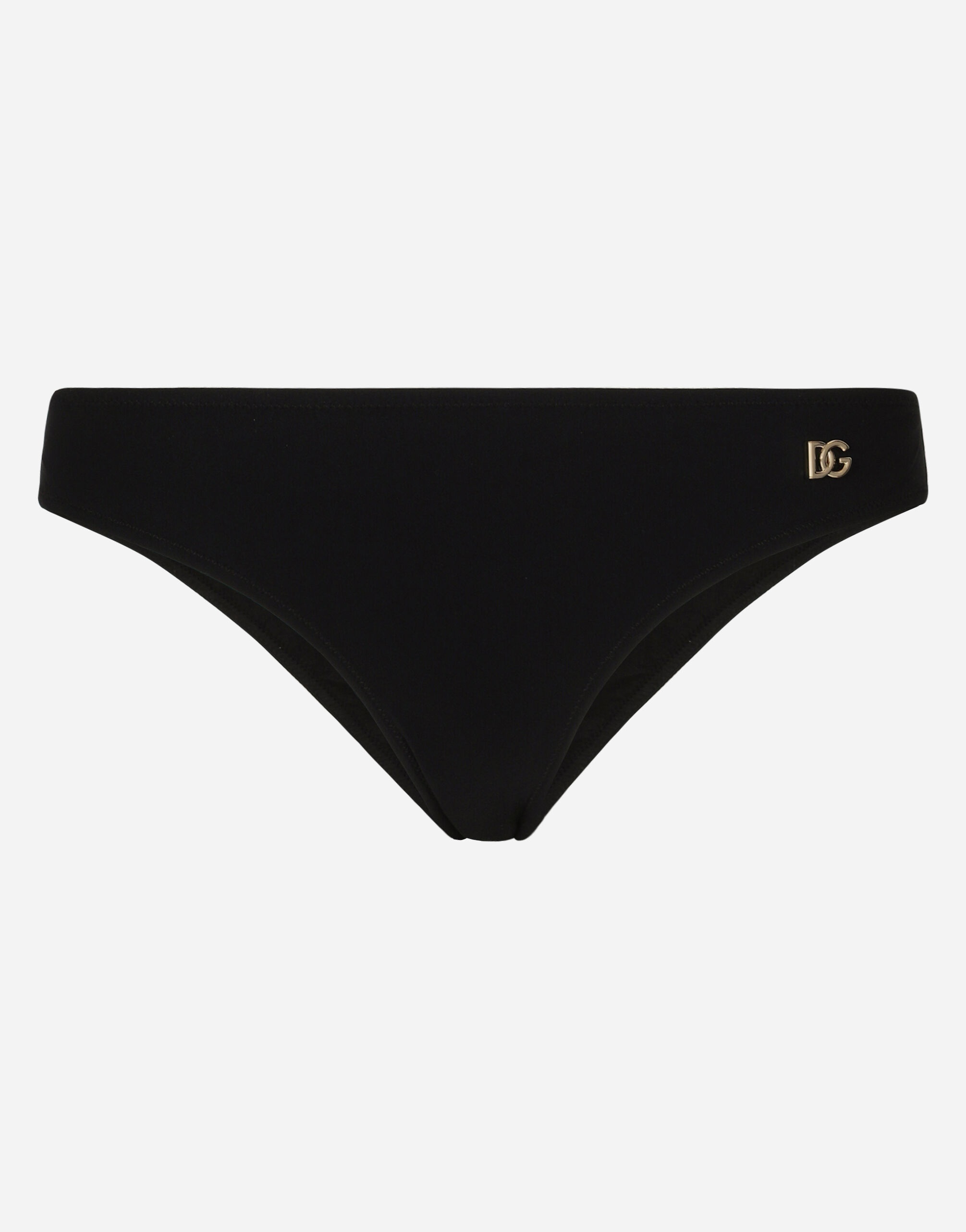 These classic understated bikini bottoms come in fine "sensitive fabric" with an extremely comfortable fit that will adapt well to all body shapes. • Regular fit • DG logo in nickel-free gold-plated metal on the front side • Matching PVC pouch • Made in Italy External composition: 75% Polyamide 25% Spandex