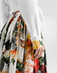 This shirt is an expression of contemporary style, ideal for those looking for a versatile and fashionable garment. Poplin shirt with Bouquet print: • White • With knot at the bottom • Back with folds • Long sleeves with square cuff • Buttonhole and button closure • The model is 175 cm tall and wears size 40 IT • Made in Italy The difference in the print placement that you may find on this product is a feature of Dolce&Gabbana’s “Handmade” pieces. A detail that makes every garment or accessory unique and exclusive. External Composition: 97% Cotton, 3% Elastane