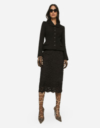 Dolce&Gabbana is creating a new DNA collection, using its style with a new concept of everyday elegance and apparel. Timeless, contemporary and traditional style. Lace is updated to become stretchy and embellished by the DG logo, making the garments feminine statement pieces that are full of character. Branded stretch lace midi skirt: • High-waisted • Stretch silk crepe de chine underskirt • Rear zipper and hook-and-eye fastening • The piece measures 75 cm from the waist down on a size IT 40 • The model is 175 cm tall and wears a size IT 40 • Made in Italy External composition: 51% Viscose 24% Cotton 20% Polyamide 5% Spandex Internal composition: 91% Silk 9% Spandex