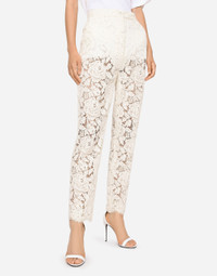 Branded stretch lace pants: • Dolce high waist • Front slant pockets • Stretch silk crepe de chine shorts • Inner leg: 74 cm • Hem: 17 cm • Zipper and canneté-covered button with DG logo • The model is 175 cm tall and wears a size IT 40 • Made in Italy Care And Details External composition: 51% Viscose 24% Cotton 20% Polyamide 5% Spandex Internal composition: 91% Silk 9% Spandex