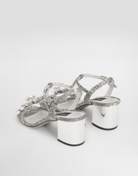 Elegance, tailored lines and sparkling details define the Dolce&Gabbana Holiday collection. Sixties inspirations blend with a contemporary aesthetic. For him, structured jackets and cuts that enhance the silhouette for her, silver brocade and crystals illuminate festive looks. Each piece stands out for its fine materials, attention to detail and distinctive style. This formal sandal stands out for its embroidered details and brocade elegance, perfect for adding a precious touch to your look. Brocade sandals with stones embroidery: • Multi-colored • Keira shape • Outsole leather • Leather open toe insole customized with label • Customization with buckle • Palladium plating • Item equipped with black cotton bag and black embossed box • Heel height 60 mm • Made in Italy External composition: 31% Acrylic, 31% Metallic Polyester, 22% Virgin Wool, 11% Silk, 5% Polyamide Internal composition: 50% Lambskin, 29% Goatskin, 7% Acrylic, 7% Metallic Polyester, 3% Silk, 3% Virgin Wool, 1% Polyamide