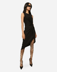 Calf-length dress in stretch jersey Milano rib with draping: • Black • Round neck • Sleeveless • Unlined • Rear zipper and hook-and-eye fastening • The piece measures 85 cm from the waist down on a size IT 40 • The model is 175 cm tall and wears a size IT 40 • Made in Italy Care And Details External composition: 91% Viscose 5% Polyamide 4% Spandex