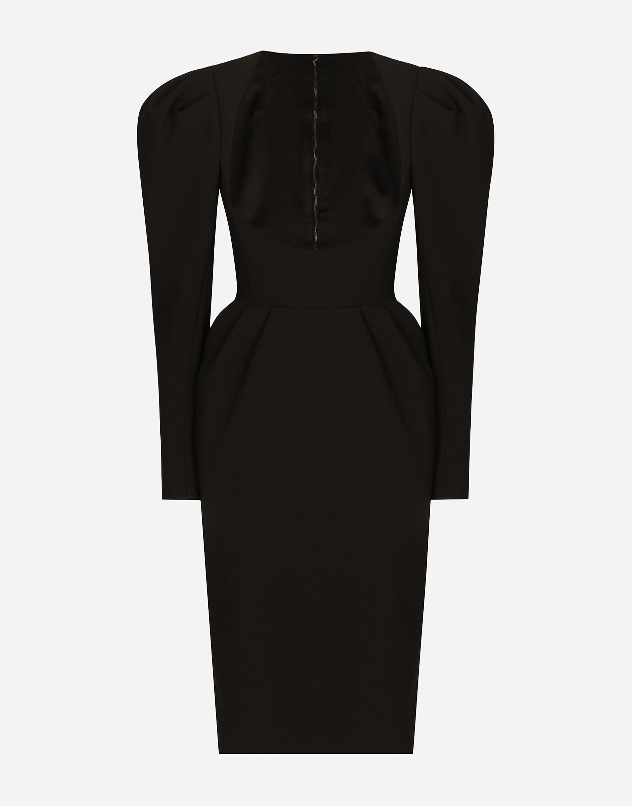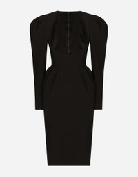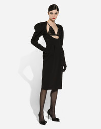 Calf-length wool dress with open neckline
