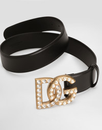 Calfskin belt with DG logo with rhinestones and pearls