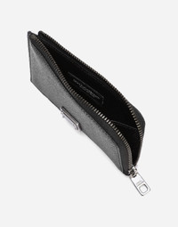 Practical and compact, this new Dauphine calfskin wallet features the logo tag. Dauphine calfskin card holder embellished with ruthenium-plated metal logo tag: • Black • Four card slots • One zipped compartment with branded slider • Measurements: H11 x W12 x D0.5 cm • Made in Italy External composition: 100% Calfskin Internal composition: 97% Viscose 3% Calfskin