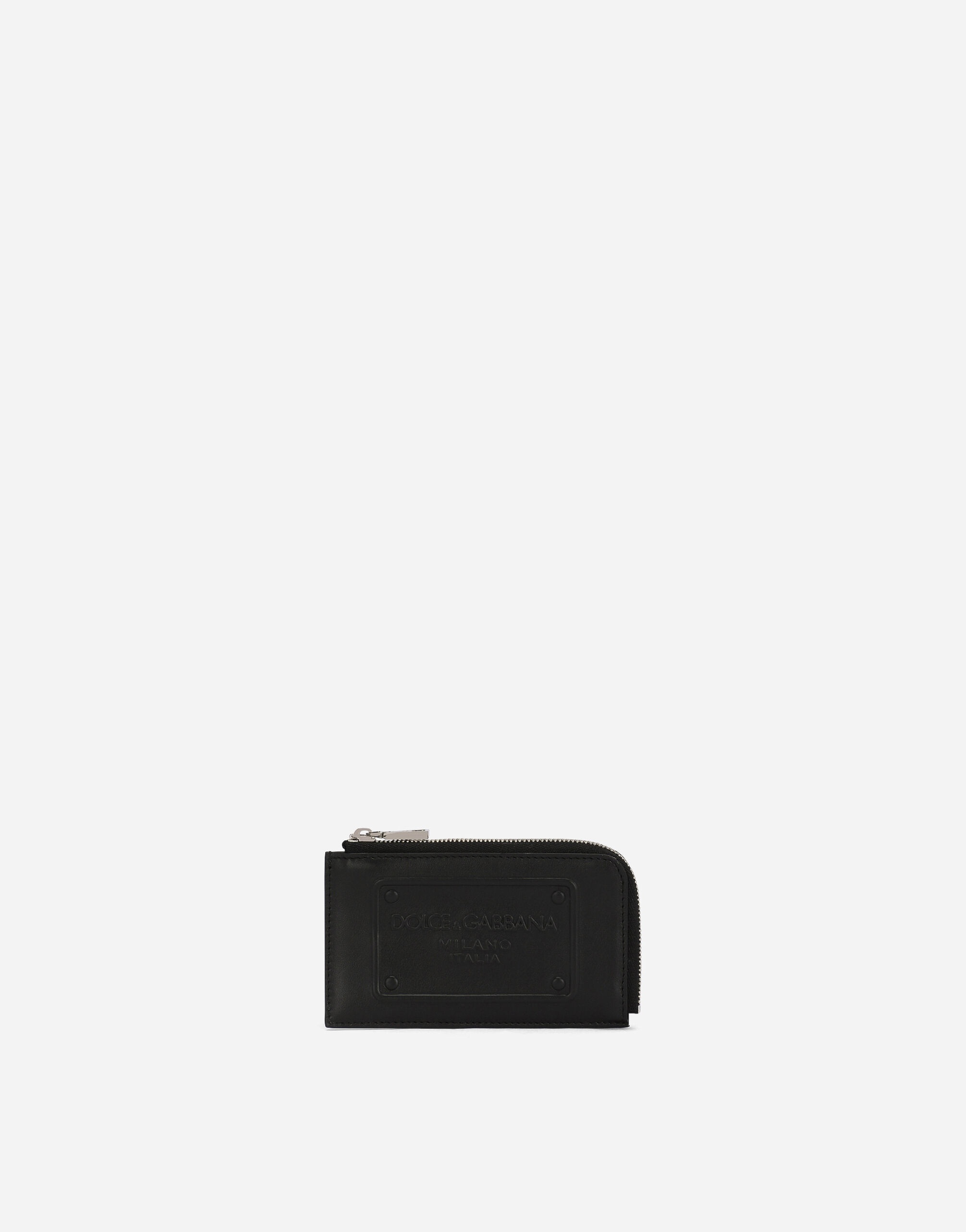 Practical and compact, this new card holder comes in calfskin and features the 3D-effect Dolce&Gabbana Milano logo on the tag. Calfskin card holder with the 3D-effect Dolce&Gabbana Milano logo on the tag: • Black • Four card slots • Zipped compartment with branded slider • Measurements: H11 x L12 x D0.5 cm • Made in Italy External composition: 100% Calfskin Internal composition: 97% Viscose 3% Calfskin