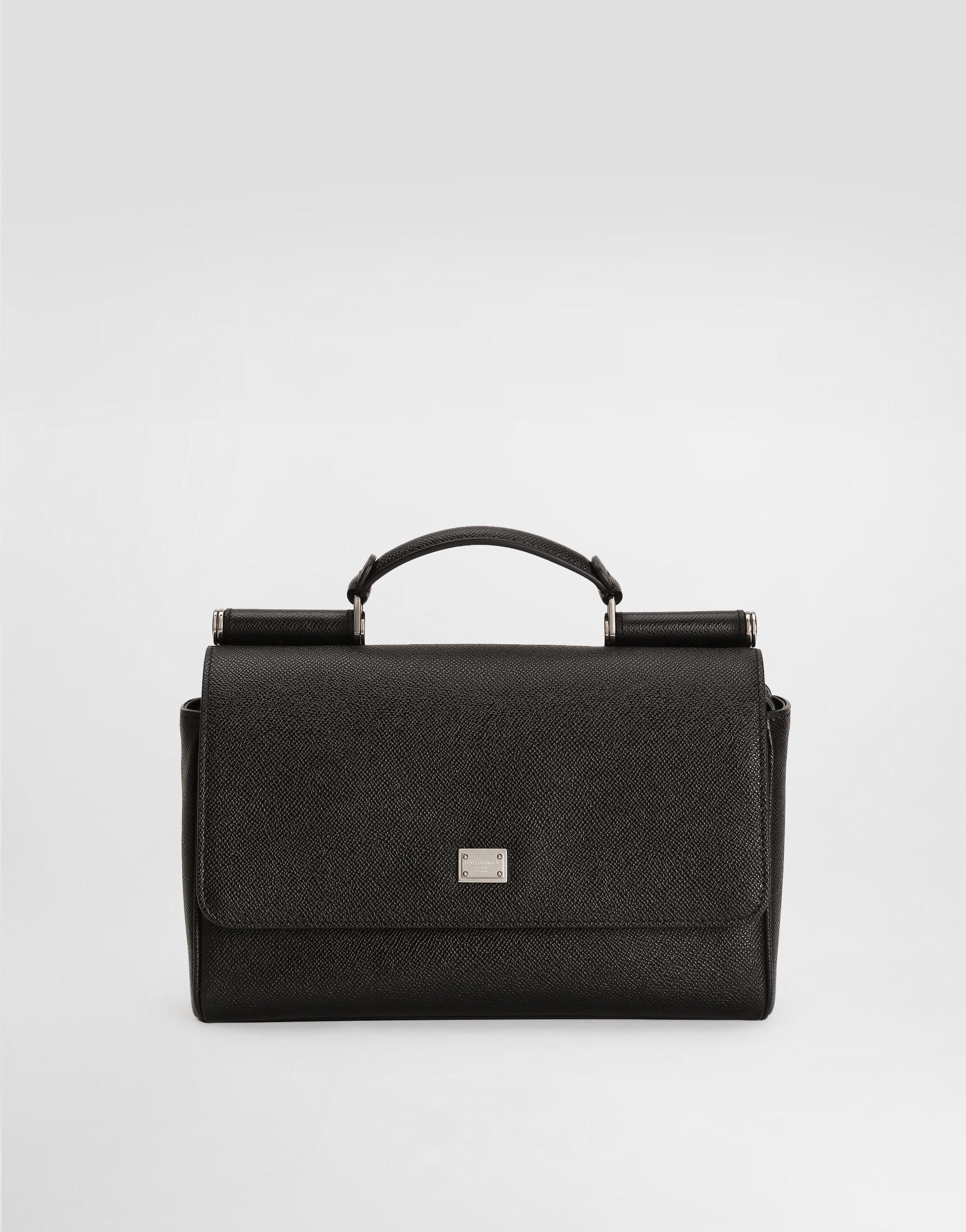 The Sicily bag with shoulder strap represents elegance and functionality in a single accessory, perfect for those who love refined and practical style. Sicily calfskin bag: • Black • Leather handles and removable and adjustable leather shoulder strap • Tuck-in closure • Antique palladium electroplating • External customization with monogalvanic plate • Internal customization with stamp with film • Interior with zip pocket • Item equipped with a logo bag and a pre-assembled box • Measurements: H 19 x W27 x D9.5 cm • Made in Italy External Composition: 100% Calfskin Internal Composition: 100% Goatskin