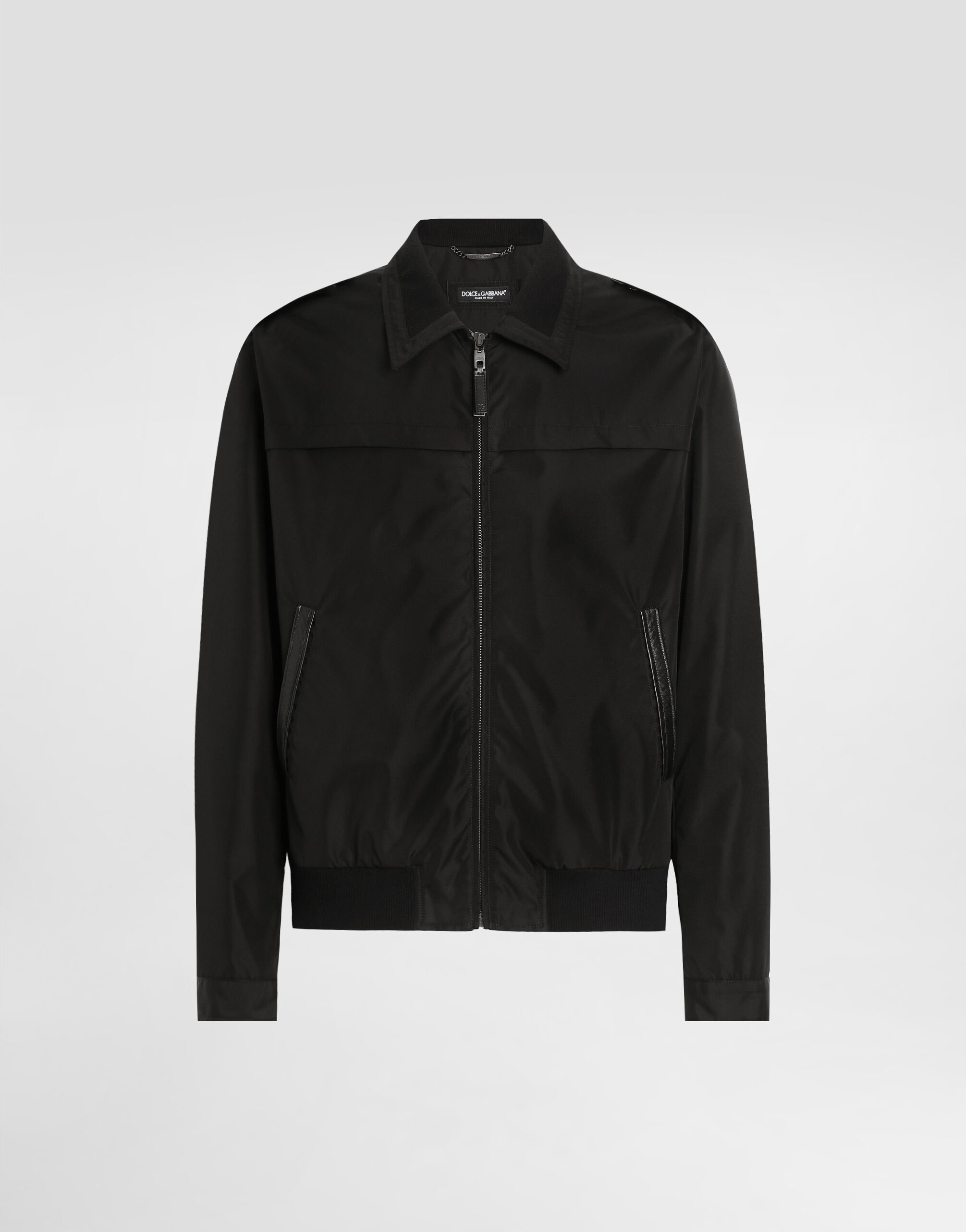 The DNA Men's Collection reimagines daily wear with bold contrasts, meticulous details, and innovative silhouettes. Outerwear stands out with clean lines and high-tech materials, merging sportiness with sophistication in sweaters, sweatshirts, and trousers. A striking color palette, including Black Sicily, caramel, cream, burgundy, and stone gray, pairs with iconic prints like Leopard and Polka dots, enhancing the collection's authentic and refined look. Canvas bomber jacket with a metal tag and the Dolce&Gabbana logo: • Black • Regular fit • Front zipper fastening • Shirt collar • Tab details on the shoulders • Side pockets and welt breast pockets with zipper • Stretch knit hem and sleeves • Lined • The piece measures 73 cm from the rear collar seam on a size IT 48 • Made in Italy External composition: 100% Polyester