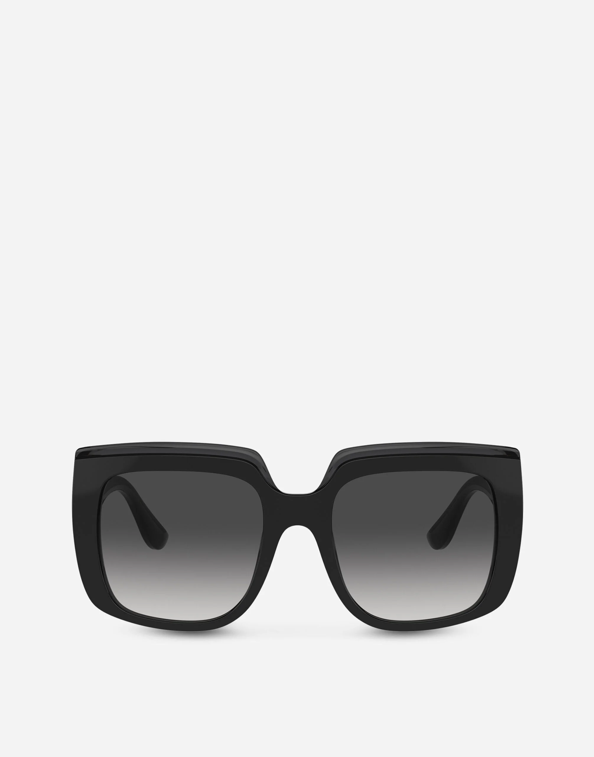 Retro design combined with luminous textures celebrate the colors & style icons of 60s • Black and black trasparent acetate frame • Black and black trasparent acetate temples • Light grey black gradient lenses • 100% UV protection • Size lens - bridge - temple: 54 - 20 - 145 mm • Fitting: Standard • Packaging: Institutional • Made in Italy