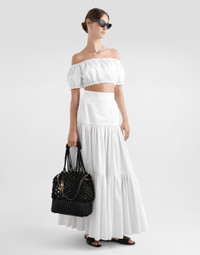 Practical and versatile, this new Carla shopper in woven calfskin features a detachable key ring. Woven calfskin Carla shopper: • Beige • Calfskin lace fastening • Calfskin top handles • Removable lining • Item comes with a branded dust bag • Measurements: H20 x W31 x D10 cm • Made in Italy External composition: 50% Lambskin 40% Viscose 10% Calfskin Internal composition: 100% Lambskin