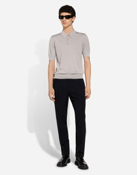Tailoring means beauty, proportions, skilled cuts and sophisticated details. The FW 24-25 Sartoriale Collection builds on this solid foundation to define new ways of pairing colors, materials and textures. Sicilian rock gray envelops different textures, while Nero Sicilia black adorns textile and velvet weaves and camel pairs with orange. Various types of pinstripes, textured-effect cashmere, double fabrics, suede and denim meet in the looks. Cashmere and silk polo-shirt: • Gray • Regular fit • Button fastenings • Short sleeves • 18-gauge plain knit • The piece measures 68 cm from the shoulder seam on a size IT 48 • Made in Italy External composition: 70% Cashmere 30% Silk