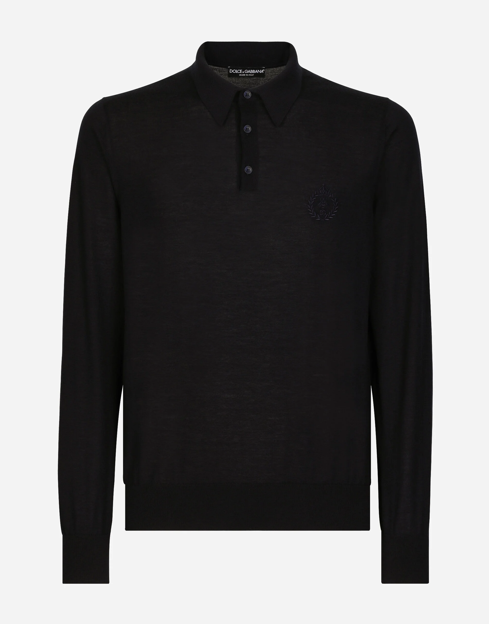Cashmere polo-style sweater with DG logo embroidery