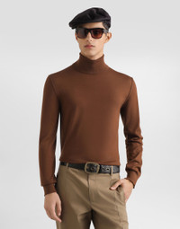 Cashmere turtleneck pullover: • Brown • Long sleeves • The model is 185 cm tall and wears a size 48 IT • Made in Italy External Composition: 100% Cashmere