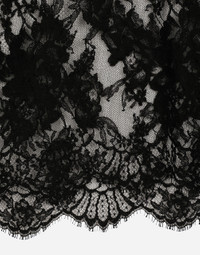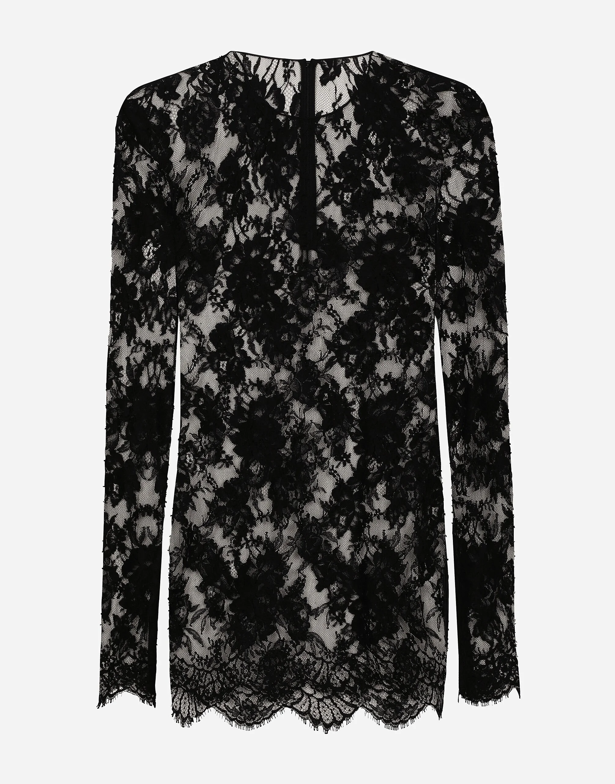 The SS24 “Stile” Collection recounts and clearly presents a strong concept: the unique and unmistakable style of Dolce&Gabbana. A word that is more than a statement. It is a concept! The designers work with surfaces, textures, layers and color nuances, as well as the sheen and fineness of the materials themselves, creating a “Stylish” collection. We’re going back to our roots with the desire to reaffirm the “Stile” - style -, flair and iconic DNA of the brand. Chantilly lace round-neck T-shirt: • Black • Long sleeves • Concealed zippers on rear neckline and sleeve cuffs • Scalloped hem and sleeves • The piece measures 88 cm from the rear collar seam on a size IT 48 • Made in Italy External composition: 74% Cotton 26% Polyamide