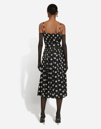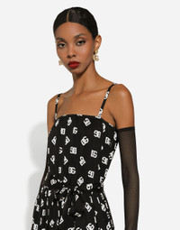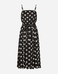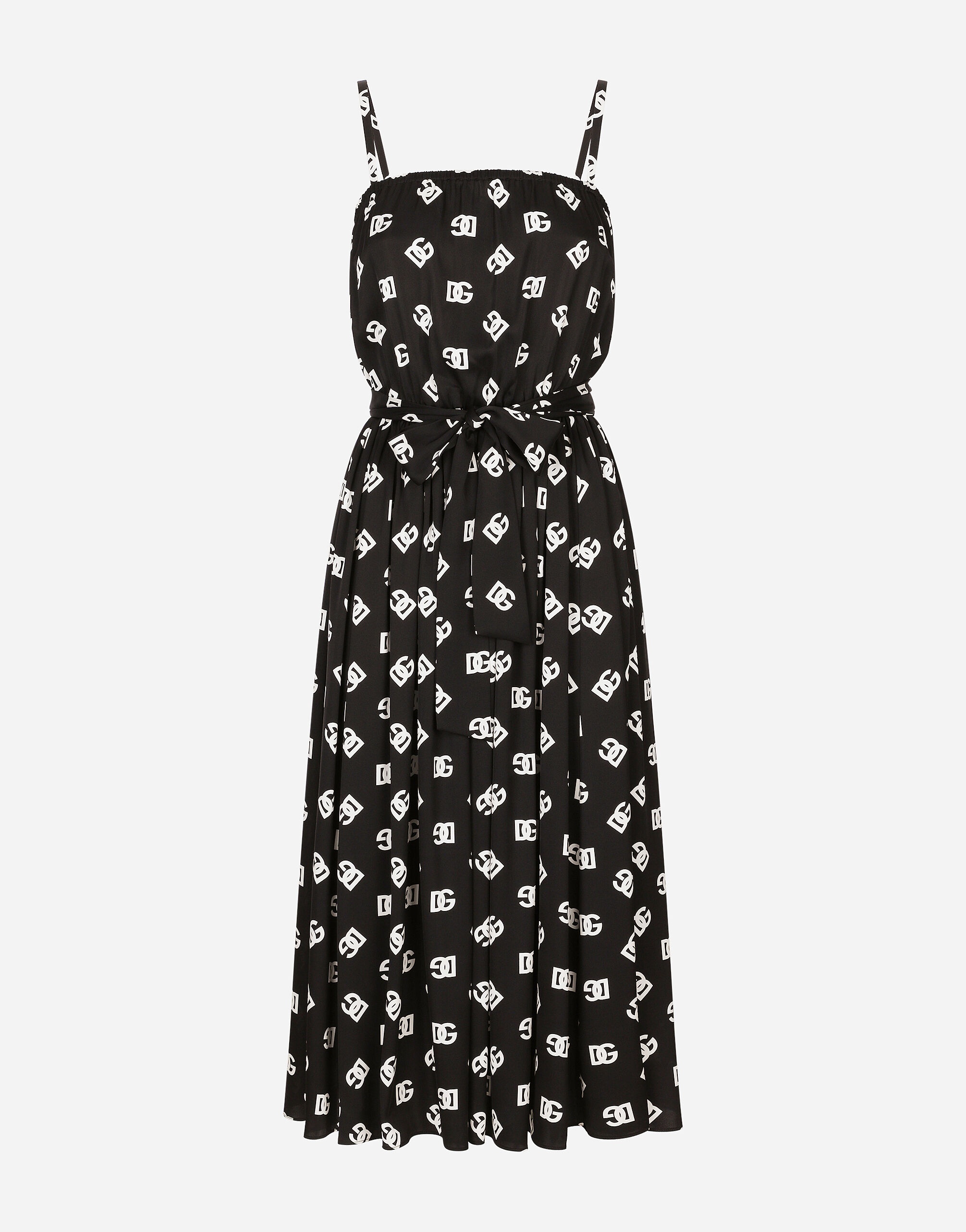 The DNA collection is distinguished by timeless shapes, bringing together three concepts: Sicilian flair, tailoring and sensuality. Nero Sicilia black and optical white predominate and pair with colors that catapult us onto the island of Sicily and make us dream. The designers channel the timeless wardrobe made up of creations that are instantly unmistakable in their simplicity, presenting us with sophisticated beauty loaded with meaning and symbolism that transcends fashion. Silk charmeuse calf-length dress with all-over DG logo print: • Black • Straight neckline with elastic • Sleeveless with shoulder straps • Unlined • Elasticated waistband and belt • The piece measures 80 cm from the waist down on a size IT 40 • The model is 175 cm tall and wears a size IT 40 • Made in Italy External composition: 94% Silk 6% Spandex