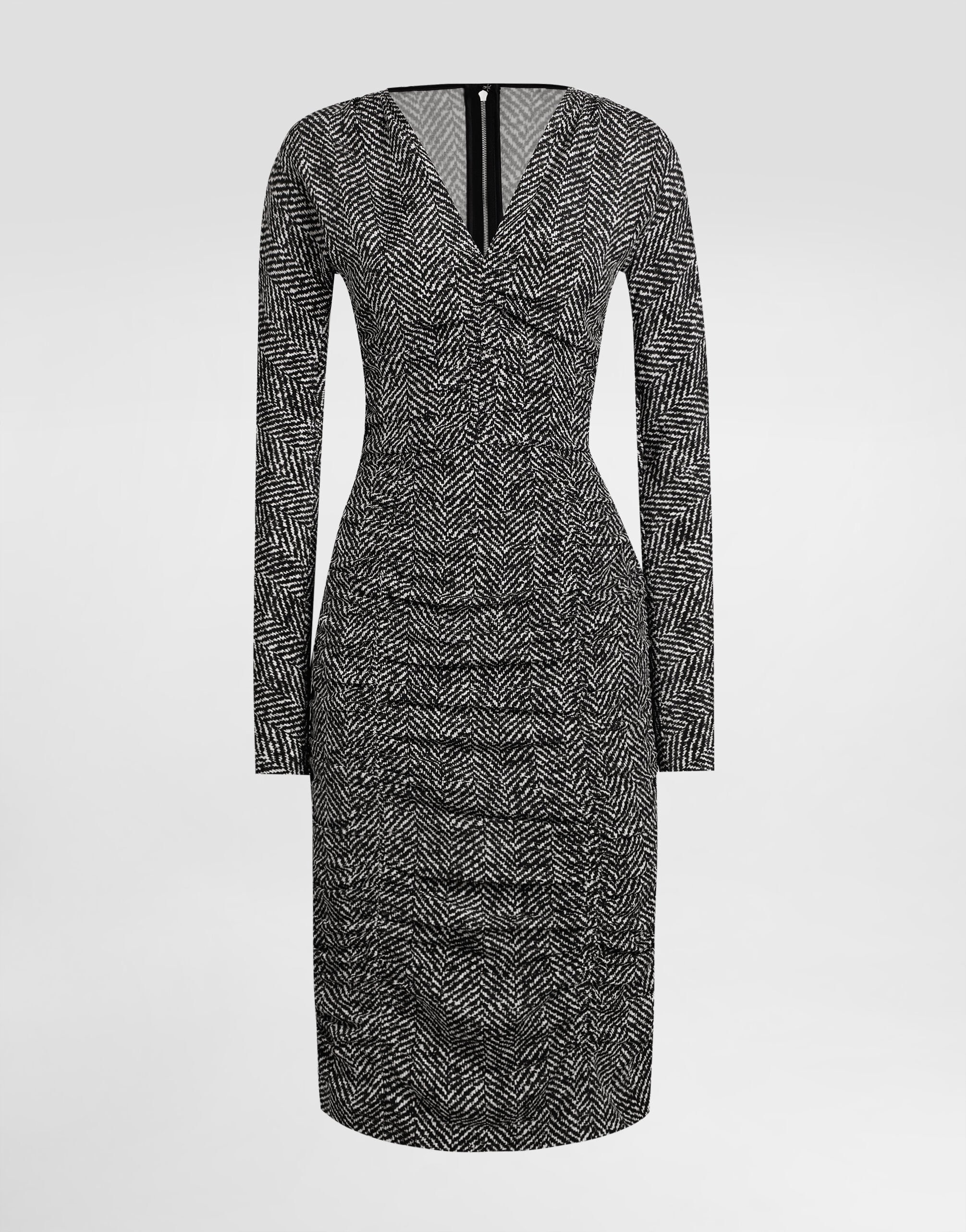 Chevron print cady midi dress